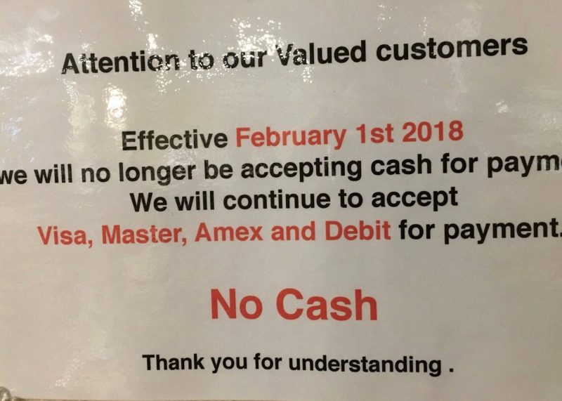 写真はバンクーバーのラーメン屋さんですが、完全キャッシュレス。つまり、現金での支払いができません。最近ではこのようなお店も出てきています。
