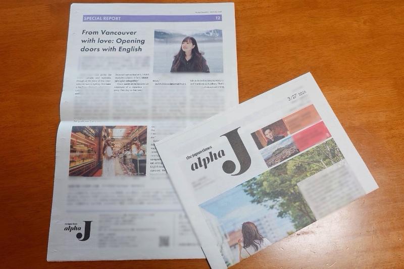 英字新聞 Japan Times の英語学習者向け英字新聞「Alpha J」にて、Akane のインタビュー記事が掲載されました。「SPECIAL REPORT」コーナーにて一面を使った特集として取り上げていただいています。